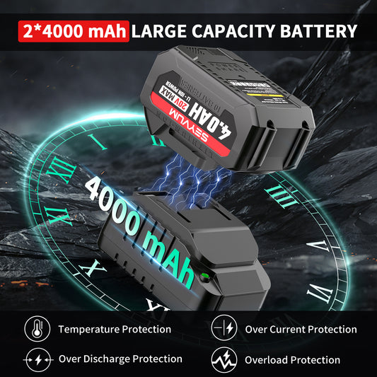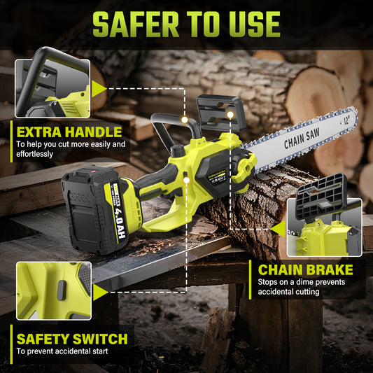 SEYVUM 12” Mini Chainsaw, Electric chainsaw with Tool-free Chain Tension, Includes Two 4.0Ah Battery & Charger, Ideal for Tree Felling, Branch Trimming and Pruning