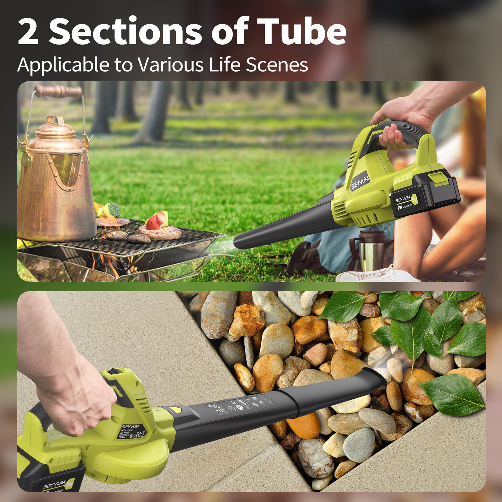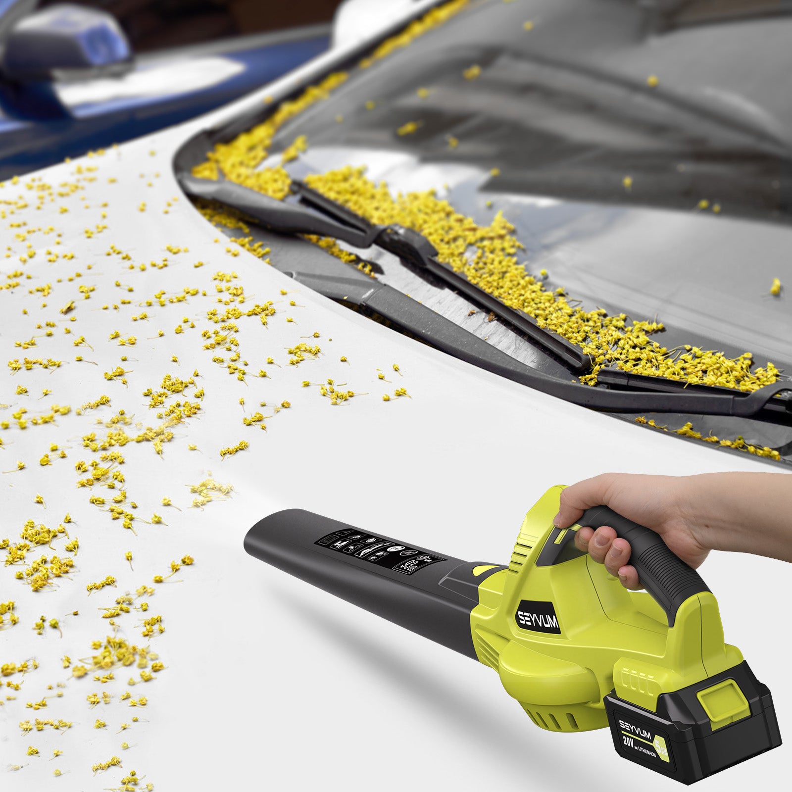 With high maneuverability and durability, household rechargeable SEYVUM leaf blowers for garden care are also used in patio, garden, cars, jobsite, camping, shop, depot and wood working.