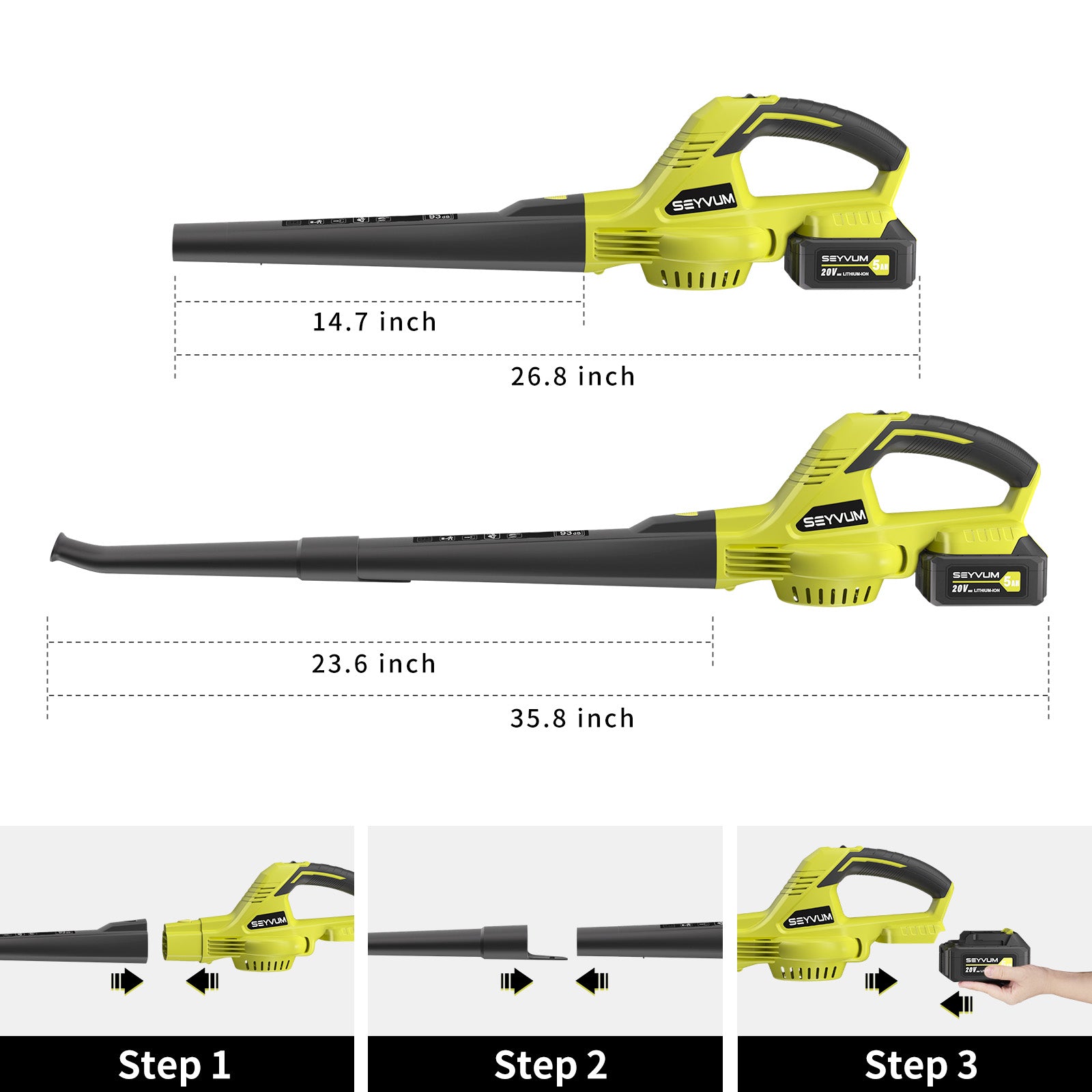 The detachable design of the leaf cleaner makes storage easier. The blowers with battery only 4 lbs, you can easily lift it with one hand. SEYVUM offers 18 months after sales service, feel free to contact us.