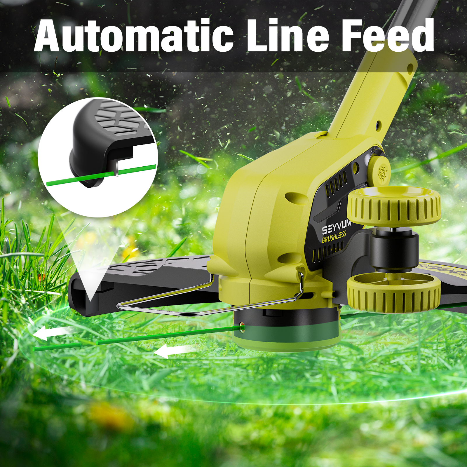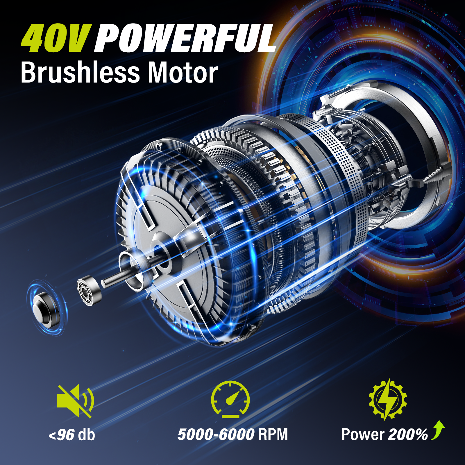 SEYVUM electric weed trimmer adopts 40V brushless powerful motor, improves power by 200%, up to 6000 Rpm, but the noise is under 96db