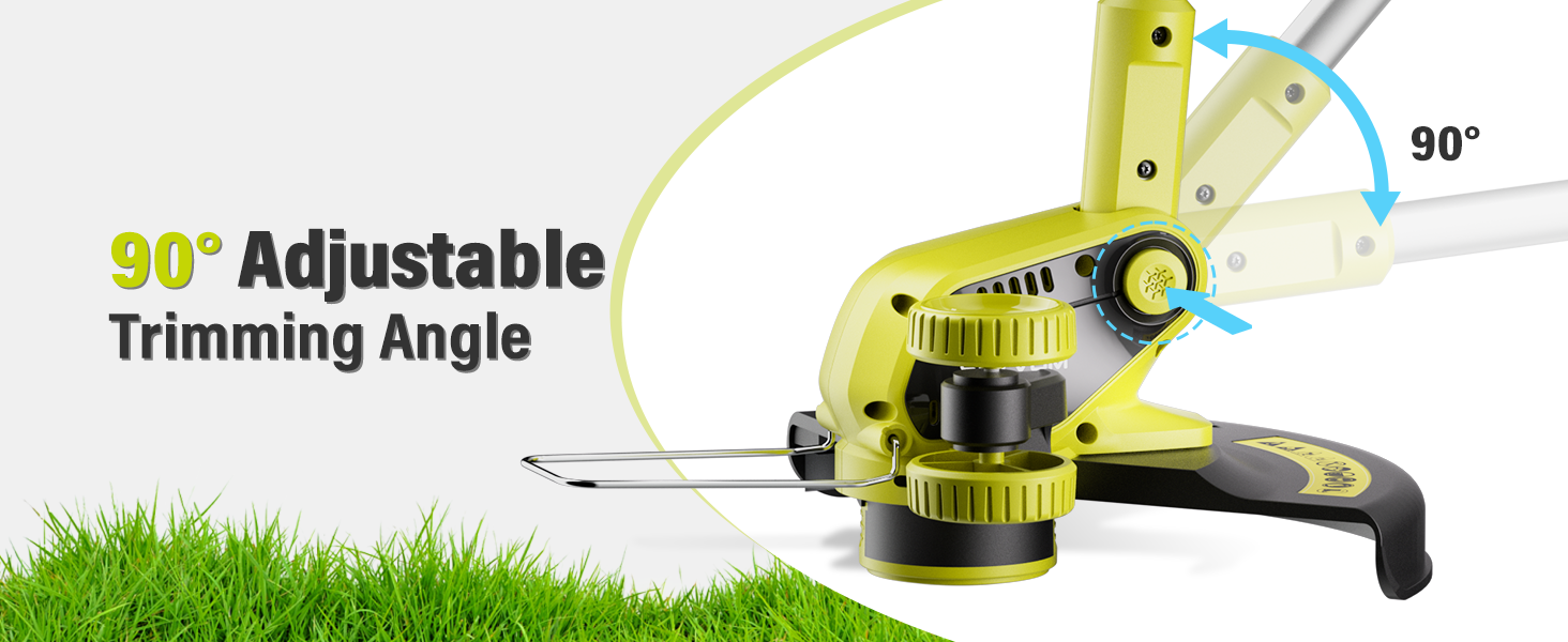 90° adjustable cutting head, 180° adjustable auxiliary handle, string trimmer to wheel edger; Ergonomic and compact design, making it easy for you to trim even in tight space
