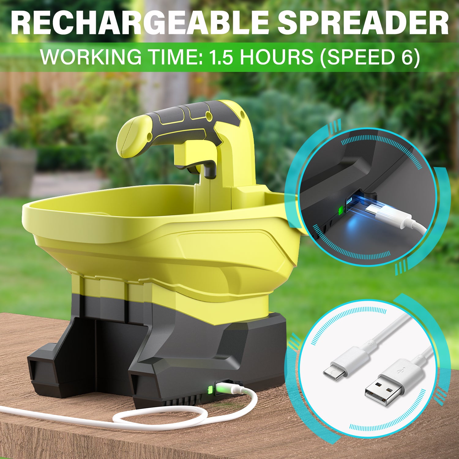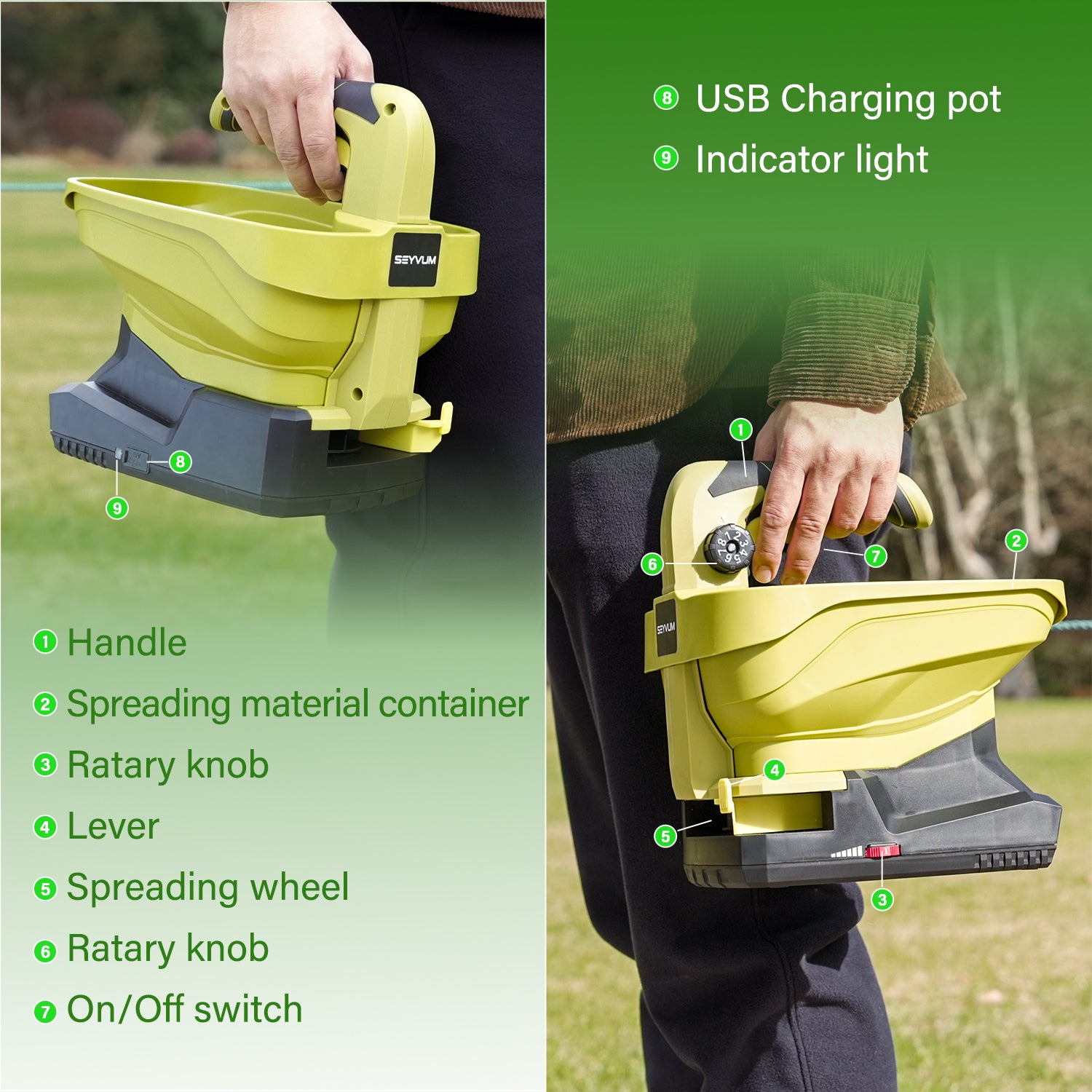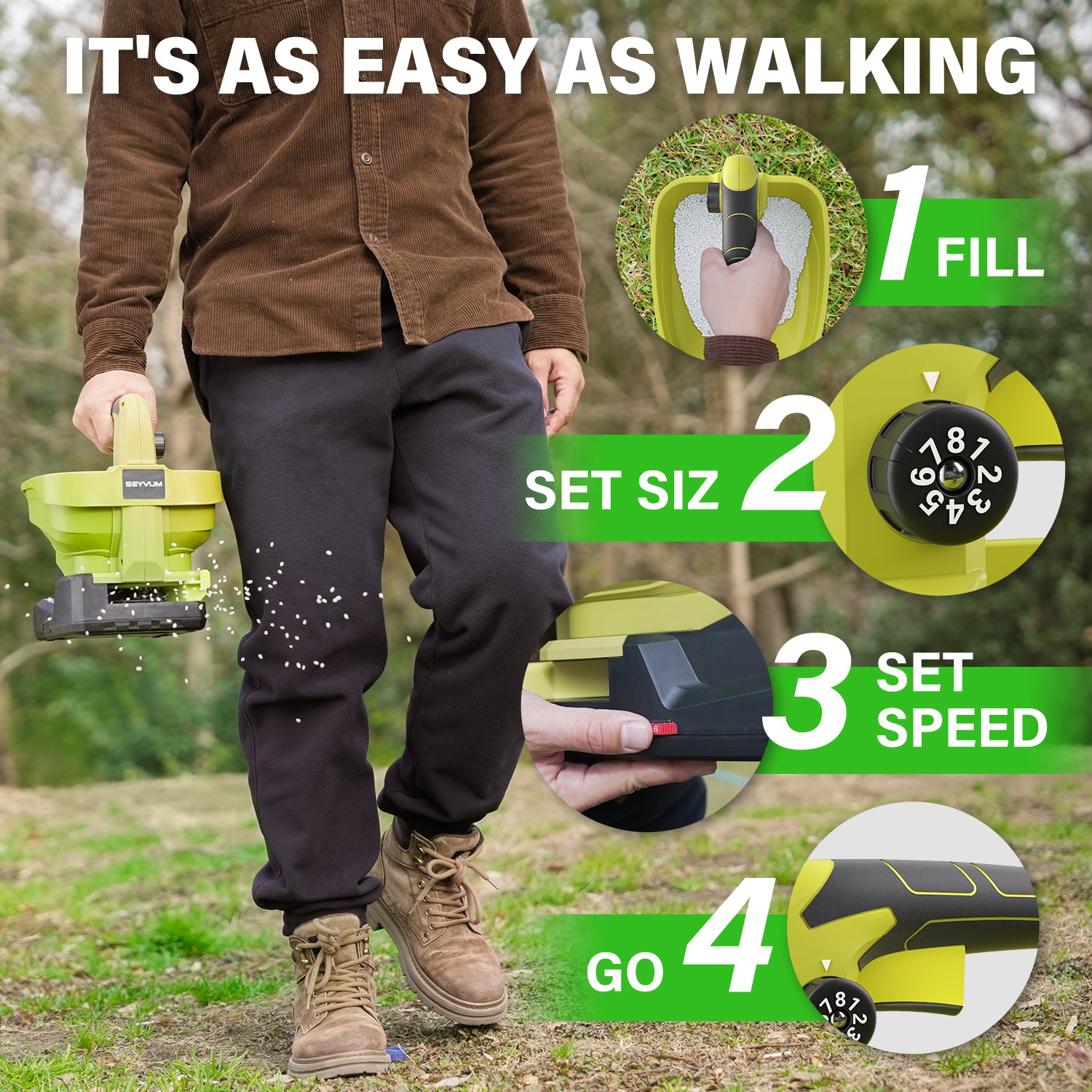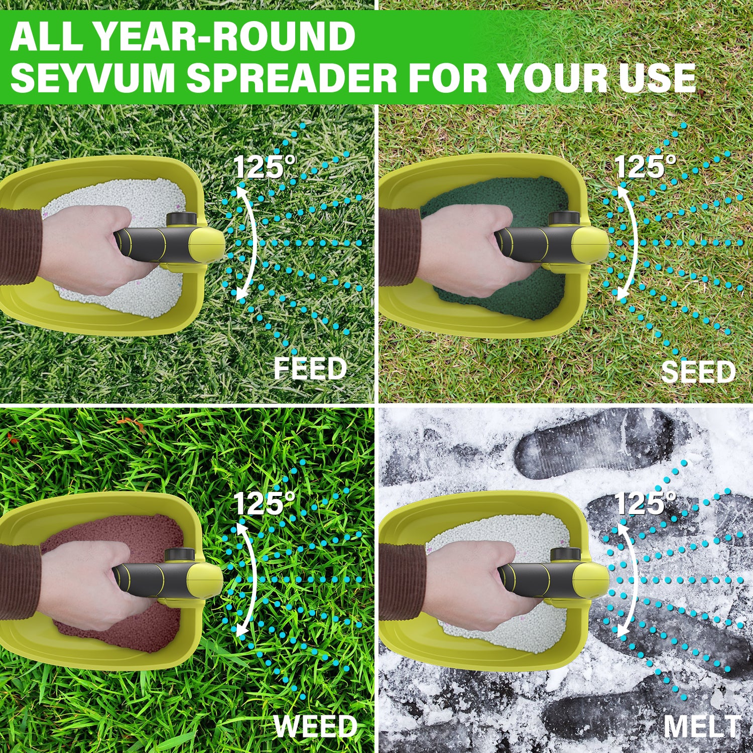 SEYVUM Hand-Held Spreader, Rechargeable Seed Spreader for Year-Round, Covers Up to 7,500 sq. ft. Yard Spreader for Grass Seed, Fertilizer, Salt and Ice Melt