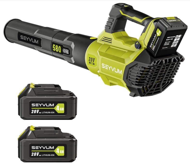 SEYVUM Leaf Blower - 580CFM 20V Leaf Blower Cordless with 2 X 4.0Ah Battery & Charger, 3-Speed Dial Electric Blower Handheld, Lightweight Powerful Battery Operated for Lawn Care, Jobsite